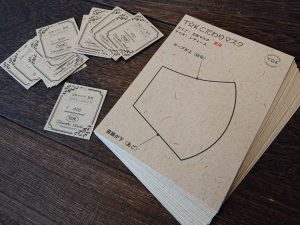 奥さんが趣味で作っている手芸用品で『手作りマスク』の販促用に値札や卓上看板を