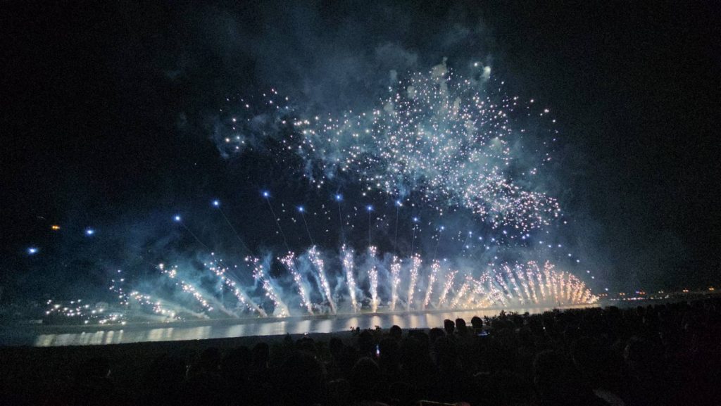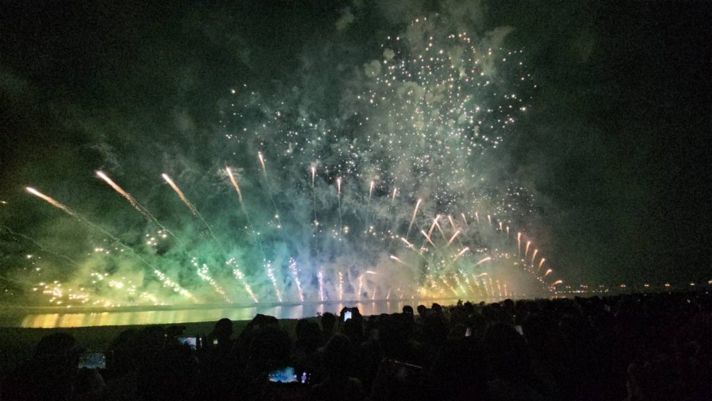 迫力満点の花火を見上げながら、