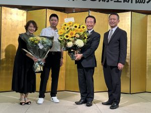 花束と、弊社社員より花籠を贈呈💐