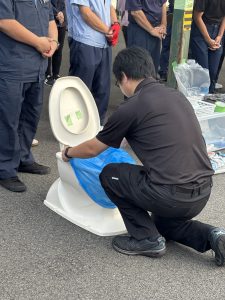 訓練後には、特別に「災害用トイレ講習」も行いました。